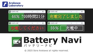常に最前面でノートPCのバッテリー残量と使用可能時間を表示するソフトウェアです。 |
