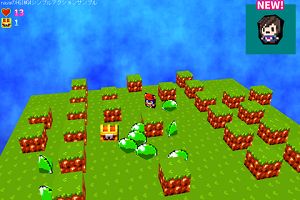ステージとしては、スライムを退治する1面が遊べます。 ここから、ソースをいじって、魔物の種類を増やしたり、 ステージ移動ができるなどと発展させて行くこともできます。