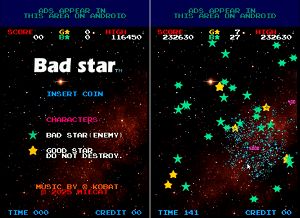 ルール: バッドスター(みどり★)をタップかクリックで潰してください。 グッドスター(きいろ★)は潰してはいけません。 グッドスターまたはタイマーが0になるとゲームオーバー。